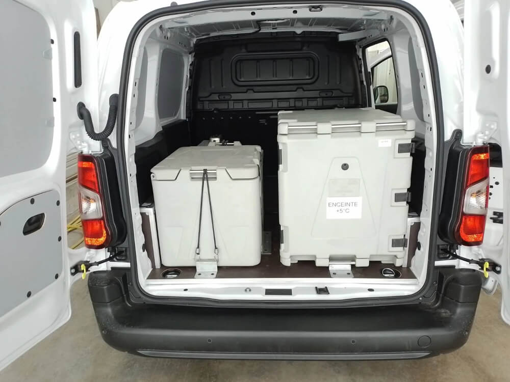 Nos solutions sont également adaptées au transport de substances biologiques et chimiques, garantissant leur préservation selon les normes spécifiques de température. Pour le transport de matières organiques, nous installons des caissons frigorifiques dans des véhicules spéciaux, en ajoutant un pack d’énergie embarquée pour assurer une autonomie totale. Ce pack comprend des batteries lithium, des convertisseurs d’énergie, chargeurs, prise externe, garantissant une réfrigération continue même sans alimentation externe.